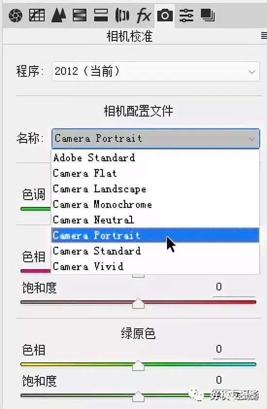 2.选择“相机校准”选项卡,在其中选择Camera Portrait预设,以针对人像照片优化其色彩与明暗。