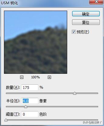 A、锐化的时候,参数值不能太大,太大就是让照片失真,恰到好处即可。