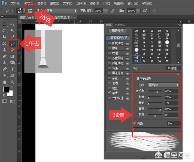 设置前景色为黑色,选择画笔工具,单击“切换画笔面板”按钮,打开“画笔”面板,设置各项参数,如下图所示。