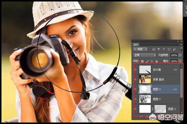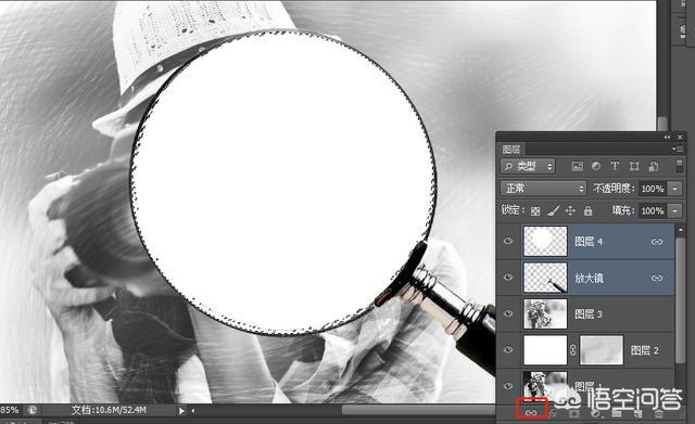 按住Ctrl键的同时选择“放大镜”和“图层4”,单击“链接图层”按钮,将两个图层链接在一起,如下图所示。