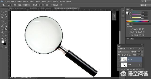 单击“文件”-“打开”命令,打开放大镜图片,如下图所示