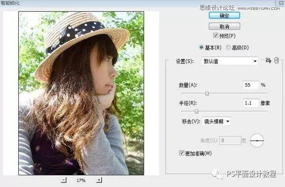 退出蒙版,这时你已经有了一个人物主题的选区,给人物智能锐化,数值如下: