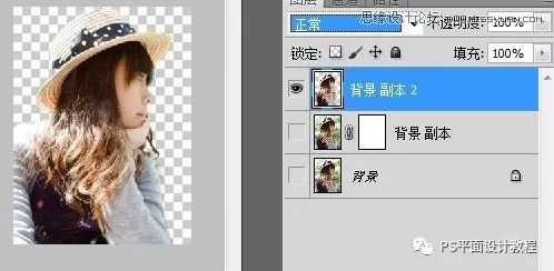 再复制原背景一层为背景 副本2(上一步说过不要取消选区)这时你的选区是背景,果断删除,留下人物