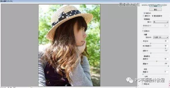 接下来反选(选区是背景),然后镜头模糊(一定要是镜头模糊哦~)数值如下:(主要是调半径,其他的随意)*先不要取消选区