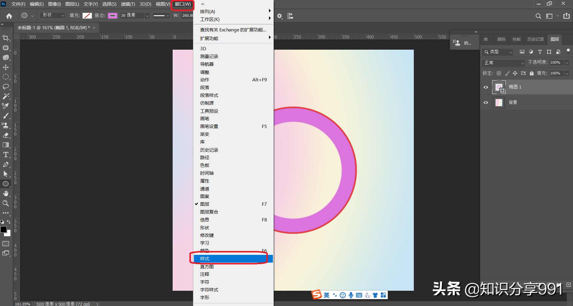 选择菜单栏中的窗口,在弹出的选项中选择样式命令。