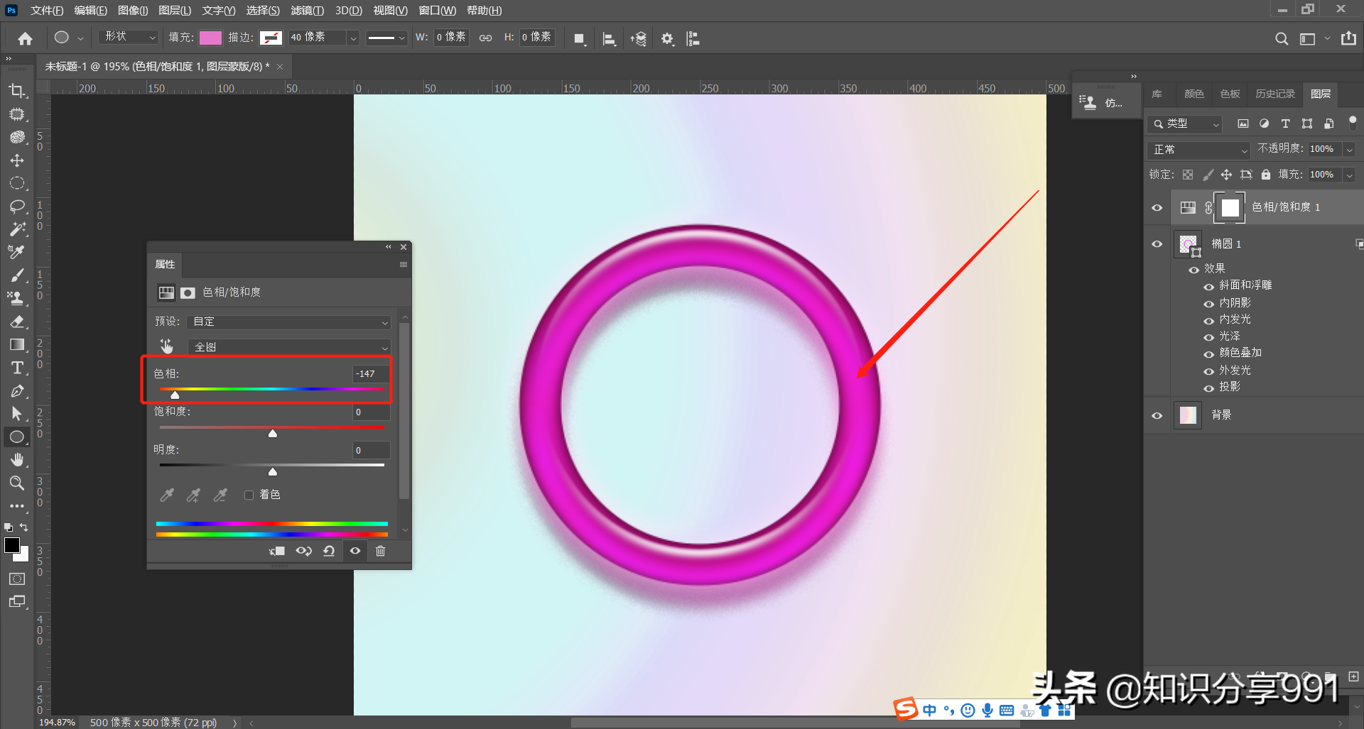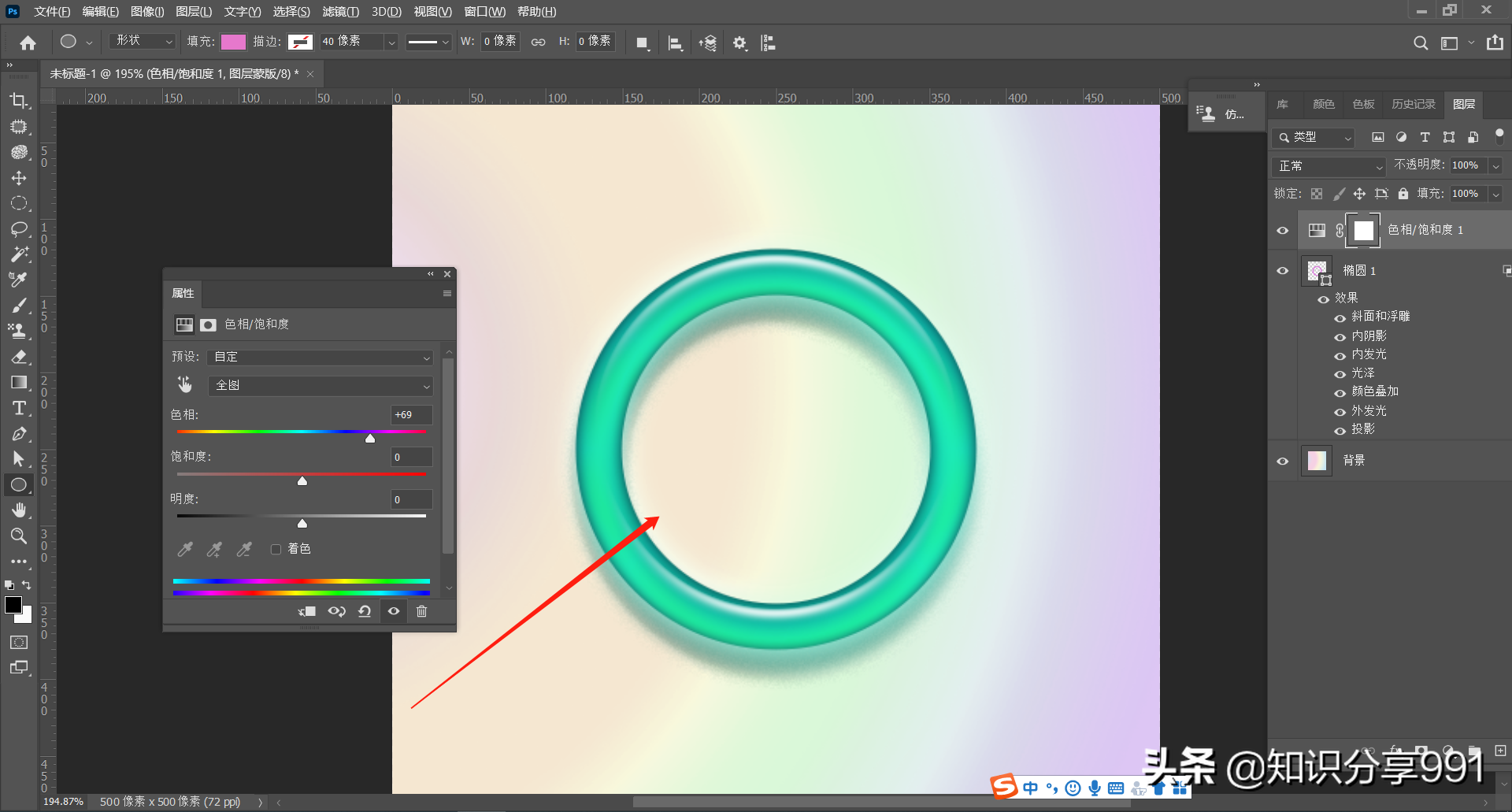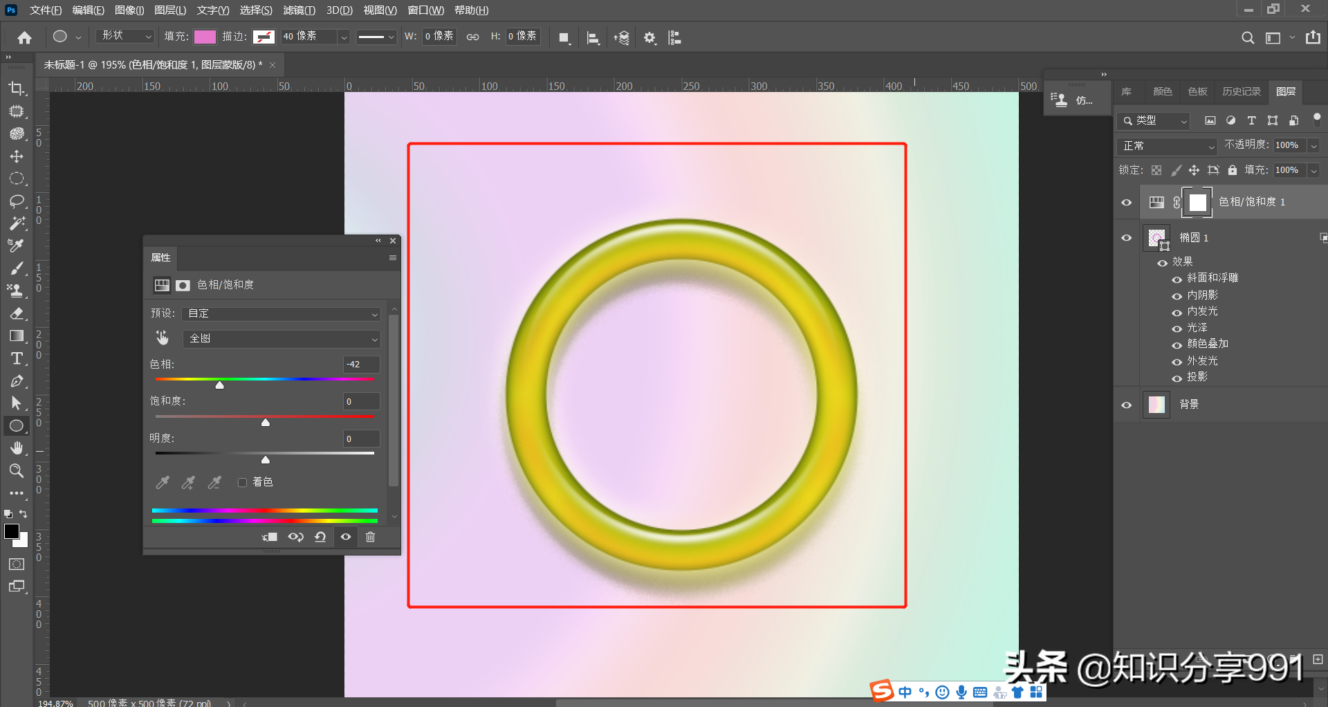 选中后手镯就自动添加上了浮雕、发光、阴影这些功能,不需要再做混合样式处理。