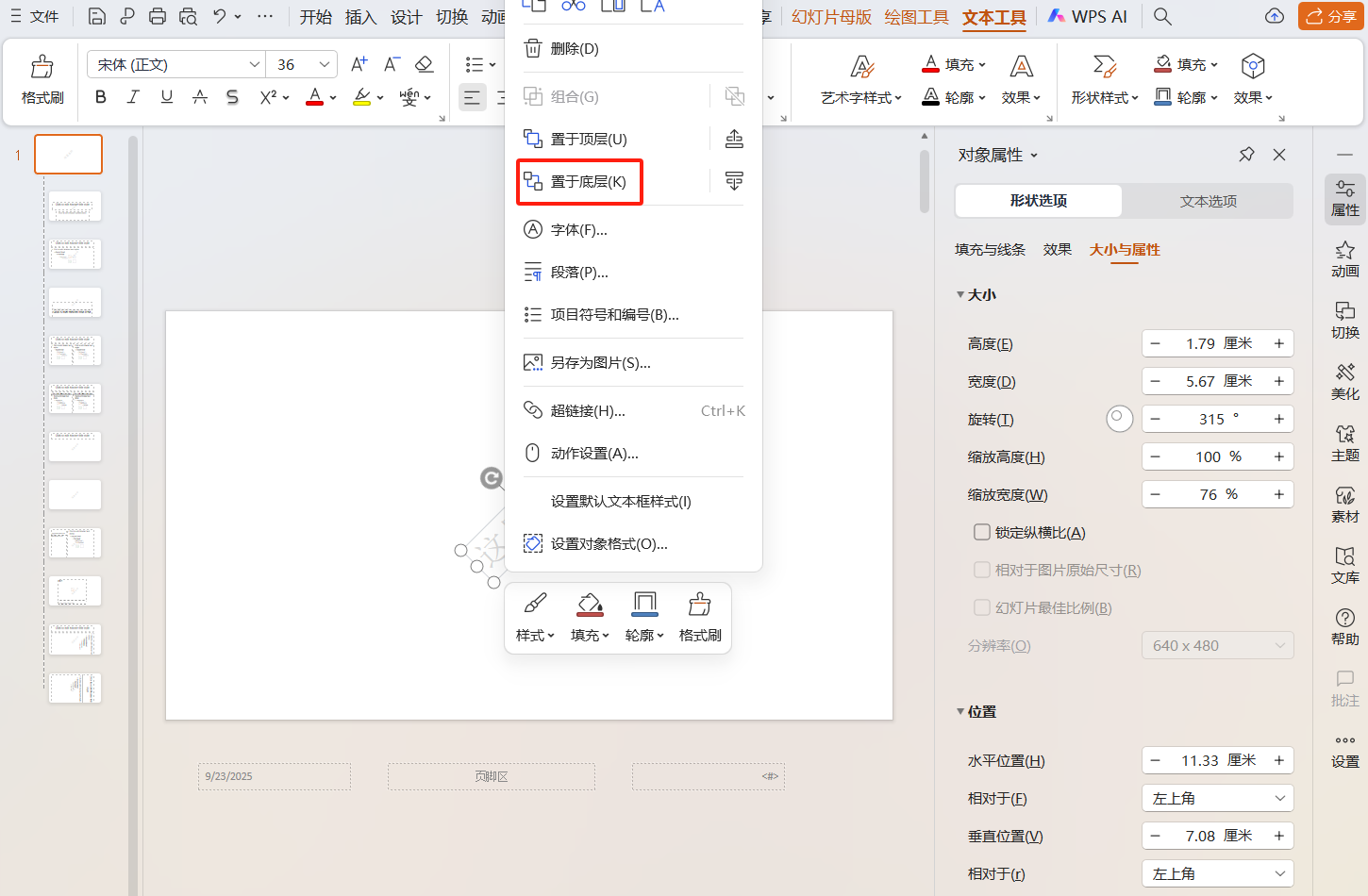 - 固定水印位置:拖动水印到合适位置,右键选择【置于底层】,避免水印影响后续编辑操作。