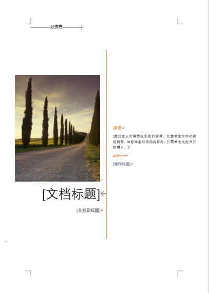 3.在插入文档里的封面中,单击该封面样式提供的文本框,根据我们的文档内容,编辑我们自己的文档标题,更换图片、编辑摘要等内容