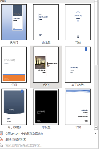 2.打开的【封面】下拉选项内置对话框中,拉动滚动条,选择自己喜欢的封面效果,单击封面样式