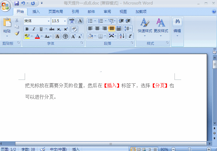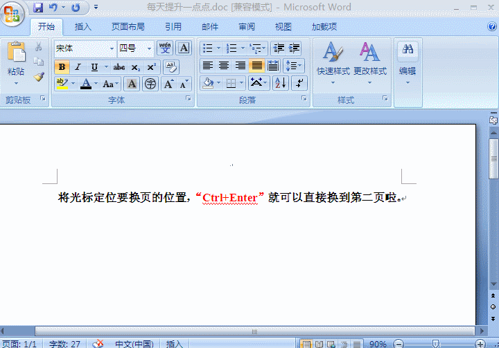 将光标定位要换页的位置,“Ctrl+Enter”就可以直接换到第二页啦。
