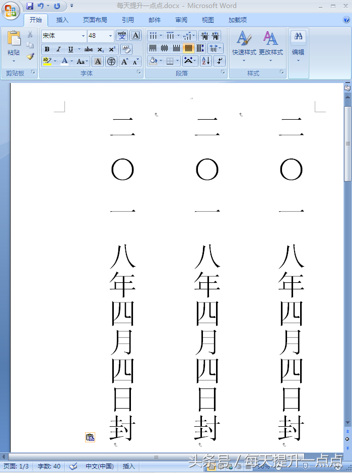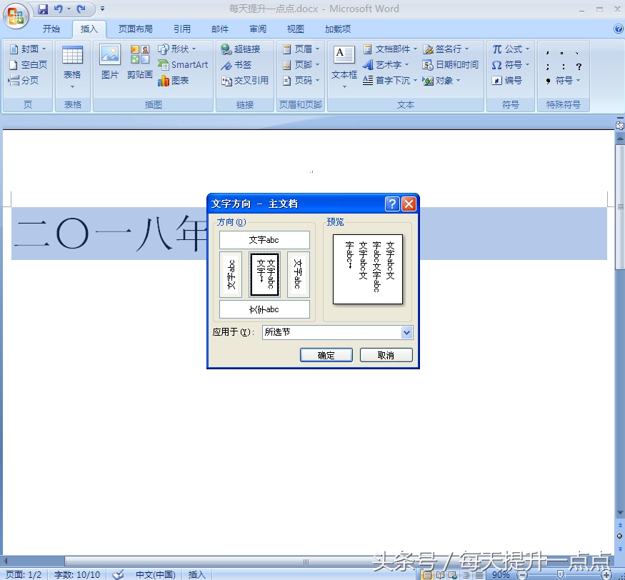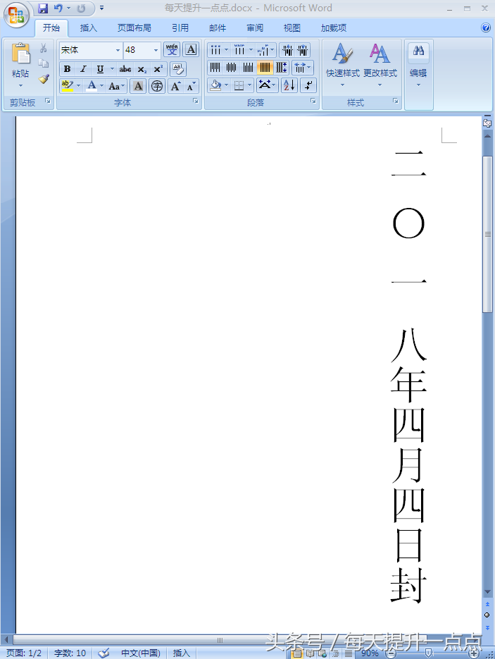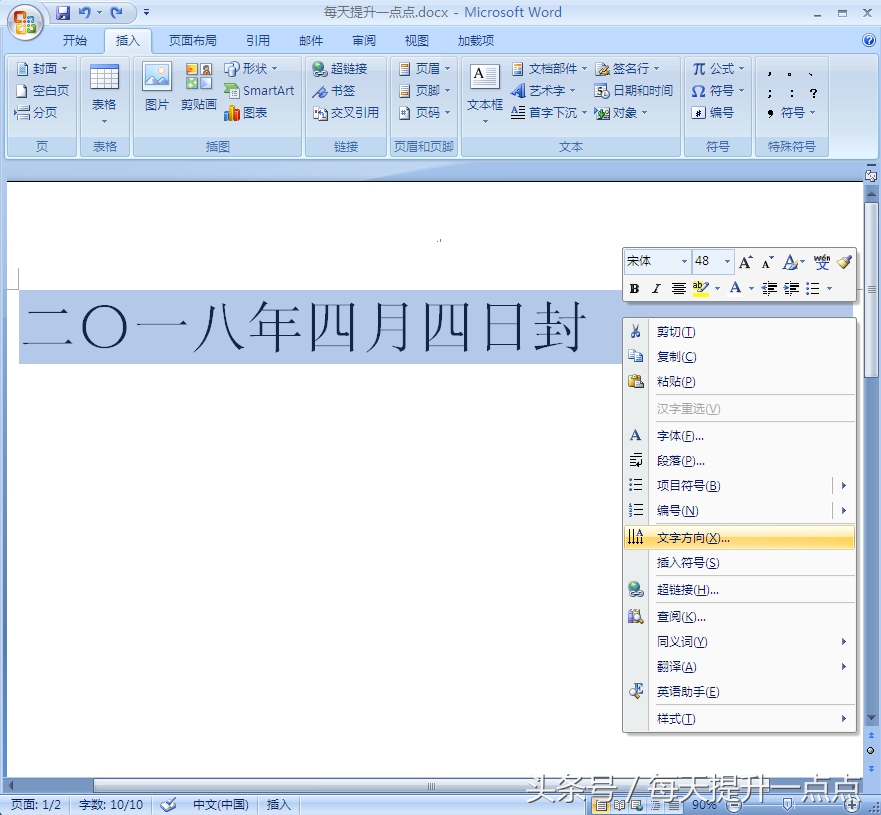 3、在日期后面加上“封”字,然后,在右键快捷菜单中选择“文字方向”。
