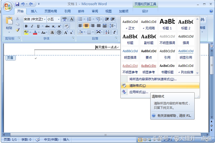 2、切换到“开始”选项卡,在“样式”组中选择其他样式,然后单击“清除格式”。