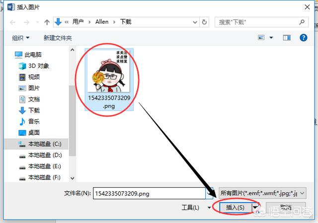 2、弹出“插入图片”对话框 — 点击要插入到Word文档中的图片 — 点击“插入”按钮。