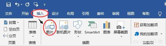 1、首先我们先插入一张图片。打开Word 2016 — 点击菜单栏的“插入”选项卡 — 点击“图片”。