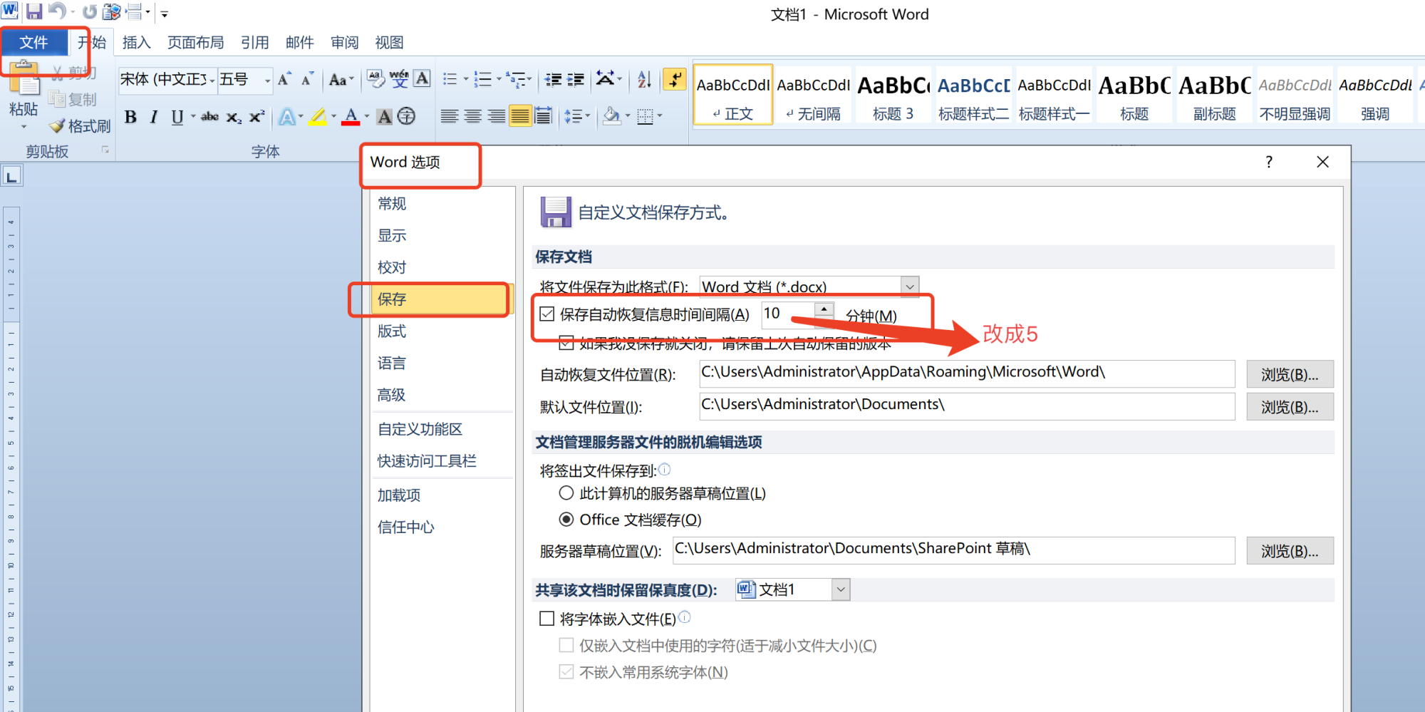 有了这个设置,在惊惶自己忘记保存时,其实word已经帮我们在5分钟前保存好了。