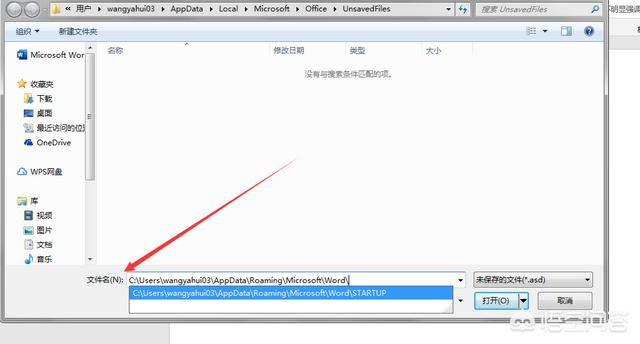 3、然后我们将刚才粘贴的路径复制到文件名这个位置直接点击打开会看到一个文件夹,点击进去即可,可以根据自己word未保存的时间,或者是文件名,找到自己未保存的文件
