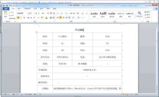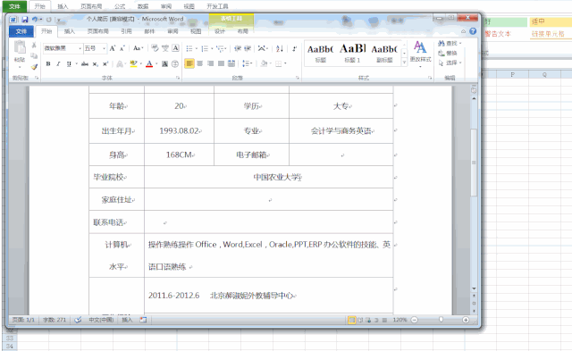 我们来看一下Excel转化为word的效果图显示,当我们直接复制粘贴到Excel中的时候,单元格的行高都会发生变化,不能变为我们想要的格式。今天我们就来学习一些,如何快速的将Word简历调整为Excel表格格式,且保证我们的表格不会发生变形。
