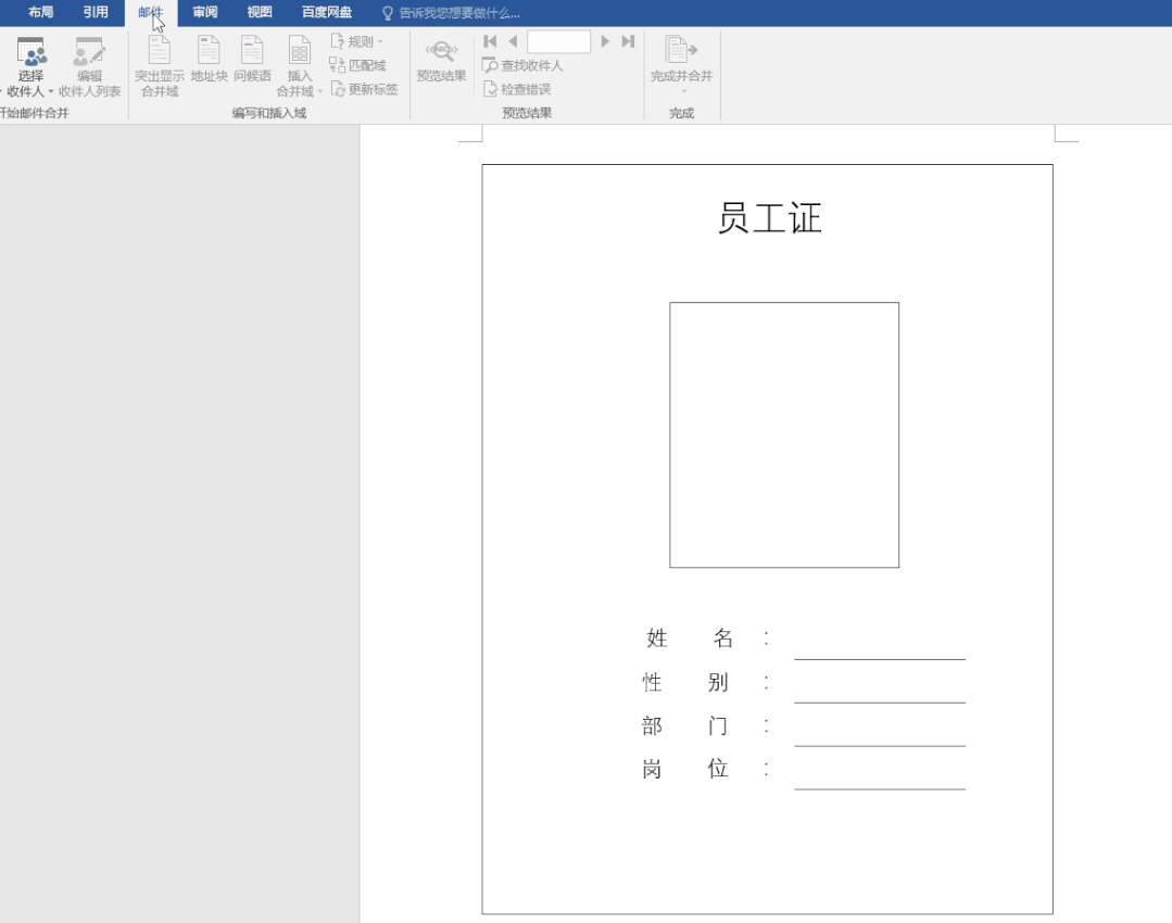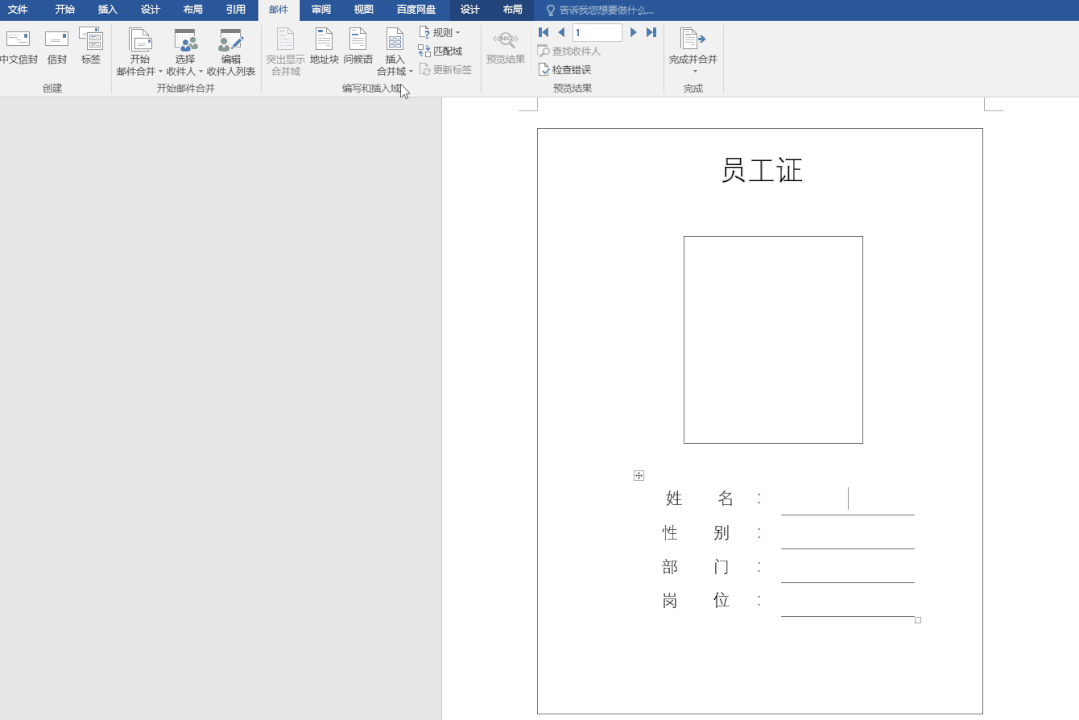 2、邮件合并插入员工资料