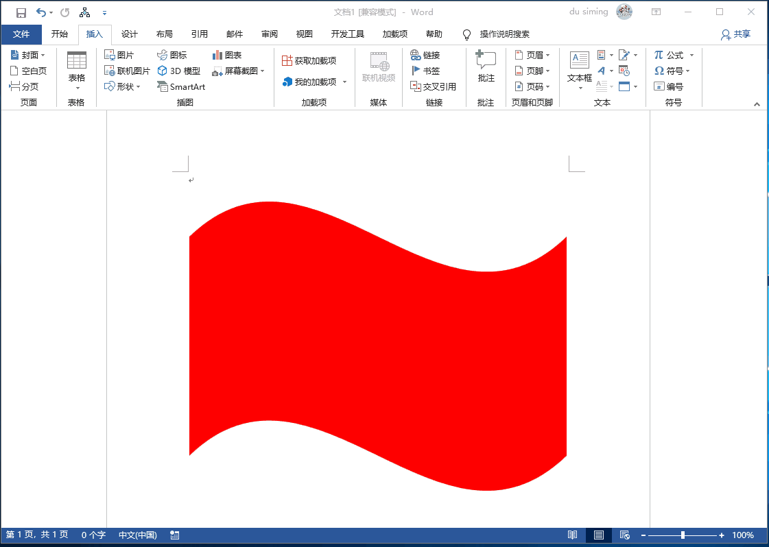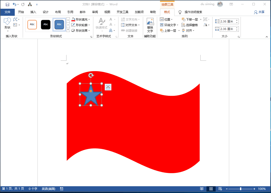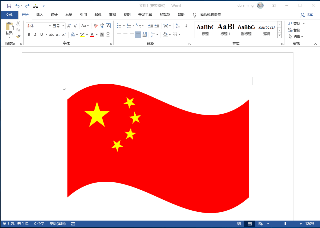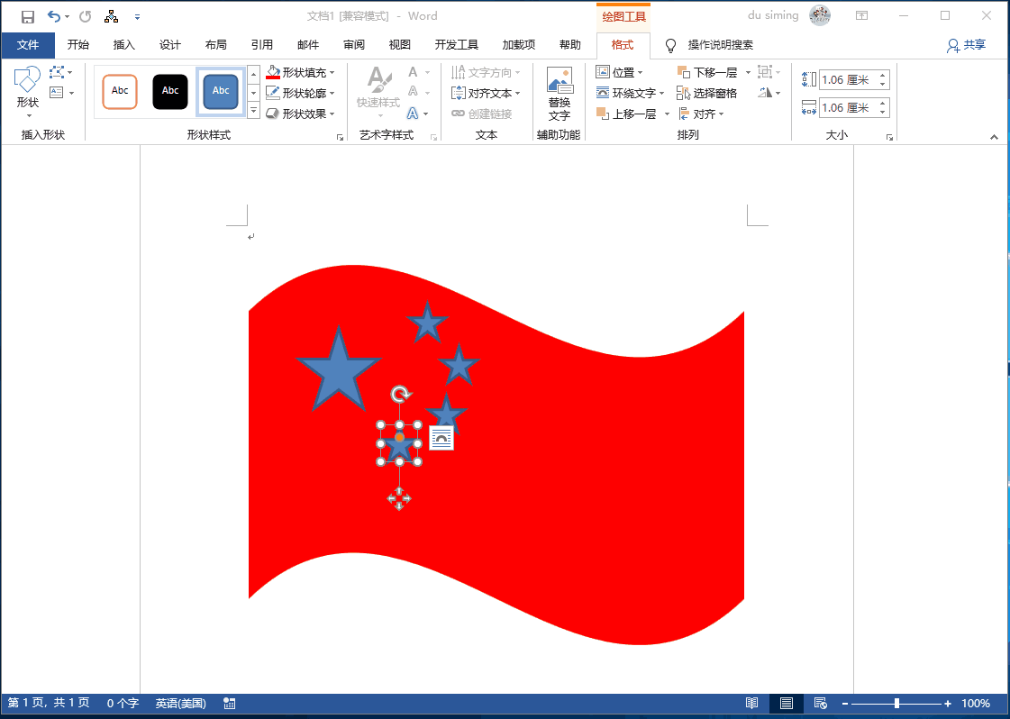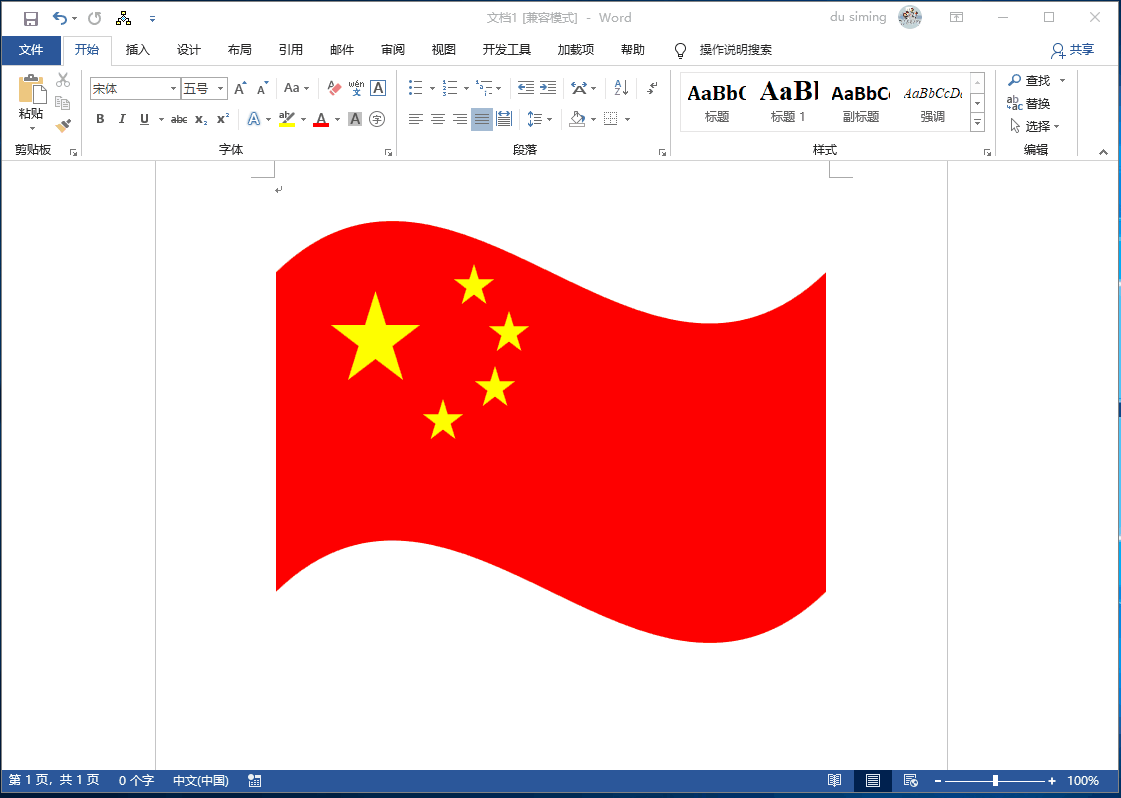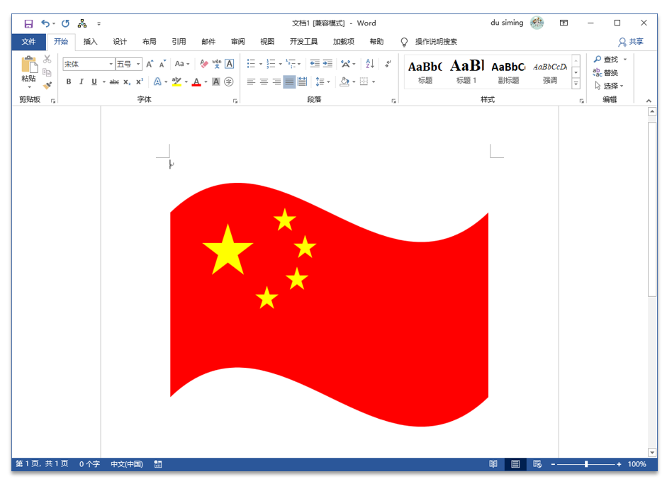 完成以上操作后,一面飘扬的五星红旗就在Word中做好了。