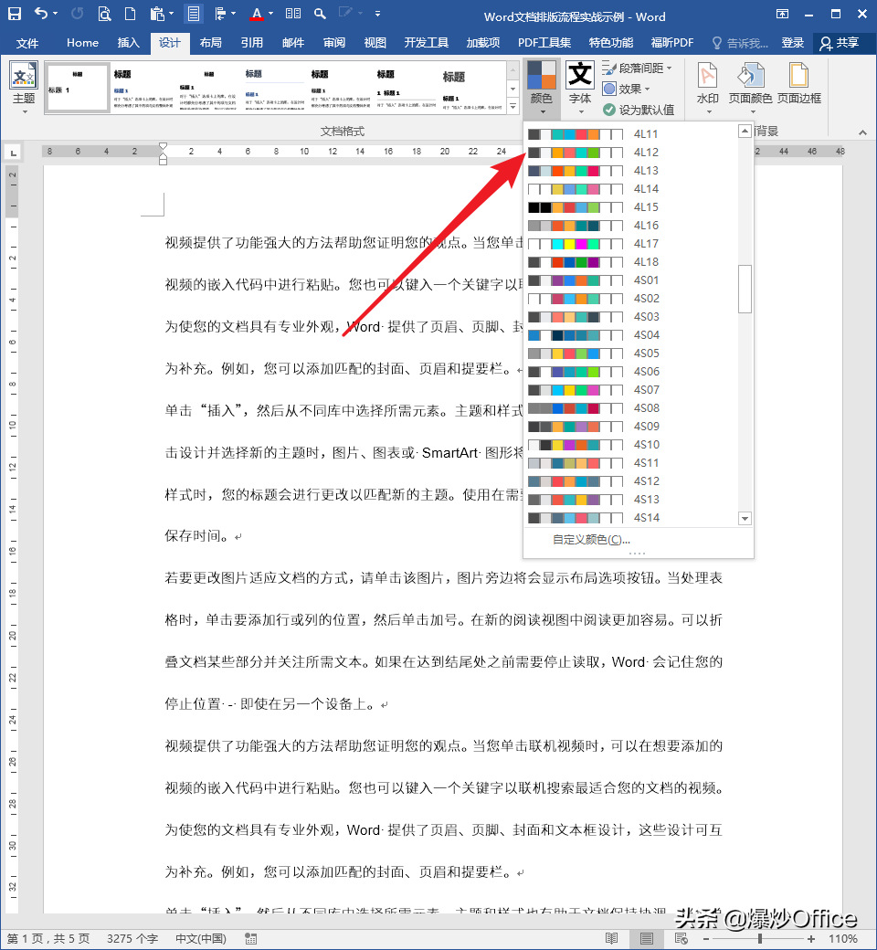 当然,如果文档中绘制的自选图形较多,而自选图形需要上色,则可以再考虑设置主题颜色。