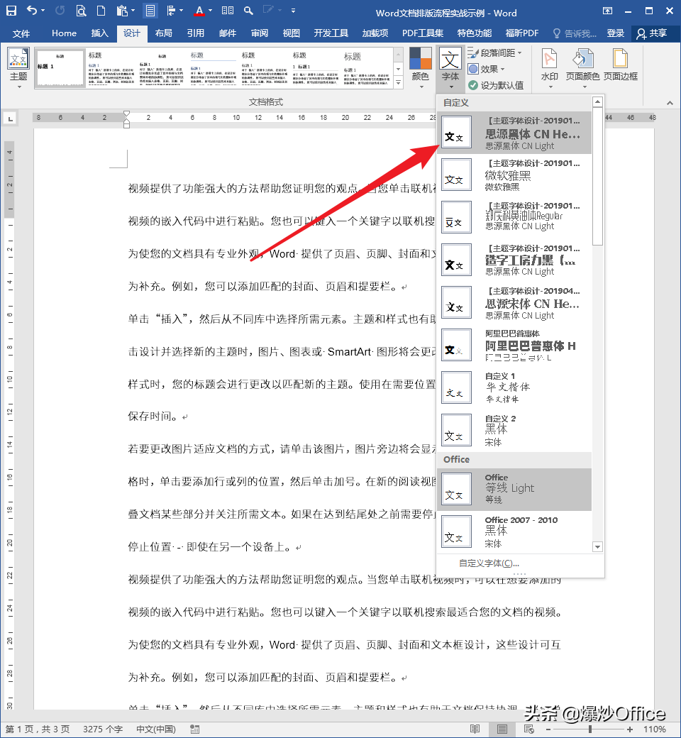 通过设置主题字体,可以一次性搞定文档中各类文字对于字体的需求,减少或杜绝设置字体的麻烦操作。