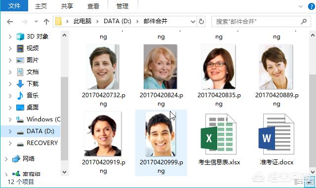 准备一份word版的准考证模板、一份Excel考生信息表和所有考生的照片,并将这些都存放在一个文件夹下。我们使用邮件合并,可以一分钟批量为几百个考生制作好准考证(效果见文末GIF图)。