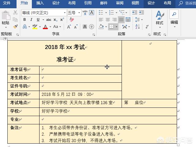 word中的邮件合并可以用来批量制作准考证、请柬、工资条、成绩单、证书等。此类文书中大部分内容都相同,不同的只是个人姓名等个人信息。下文将以制作准考证为例,详细介绍邮件合并使用方法。