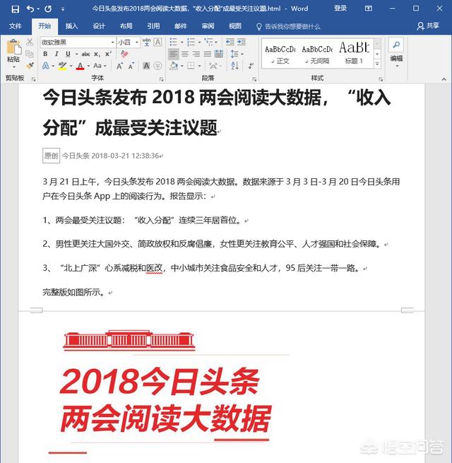 由于网页上的内容比较多,打开时可能需要比较多的时间,打开后会看到整个网页包括文章之外的其他内容全部都保存在word文档中啦。