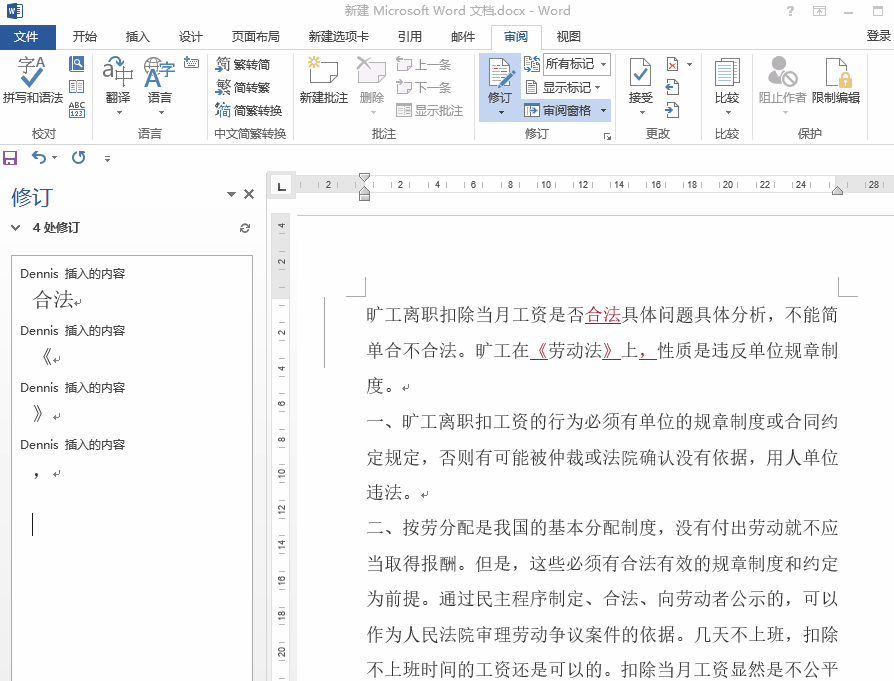 4,然后在文段中修改,我们可以在左侧看到,修改的内容,修改的作者,并且修改后的地方也变成红色