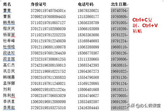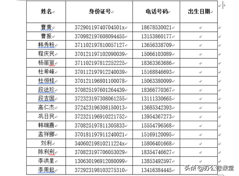 相信在大家都会在Excel中提取出生日期,但是如果在word怎样可以快速提取每个人的出生日期呢。如下图所示,在word中我们想要统计每个人的出生日期应该怎样提取呢?