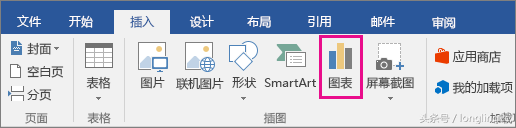 如果在 Word 中从头开始创建简单的图表,请单击【插入】>【图表】,然后选择所需图表。