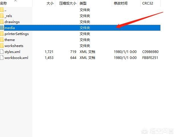 7、批量导出图片:将保存图片的word文档另存为rar或者Zip压缩格式,打开压缩包找到【media】文件夹就可以看到所有的图片了!