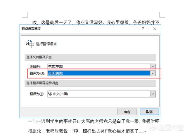 之后我们在弹出的窗口里面把要翻译的目标语言选择好,这里我们选择英语。