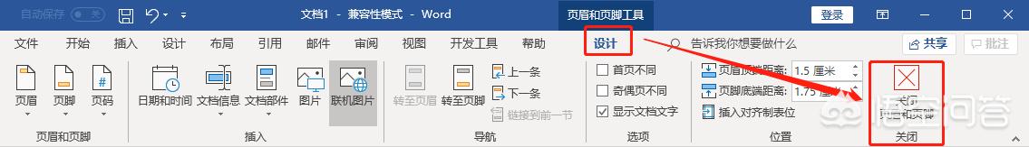 最后点击菜单栏的“设计”选项卡 — 点击“关闭页眉和页脚”即可。