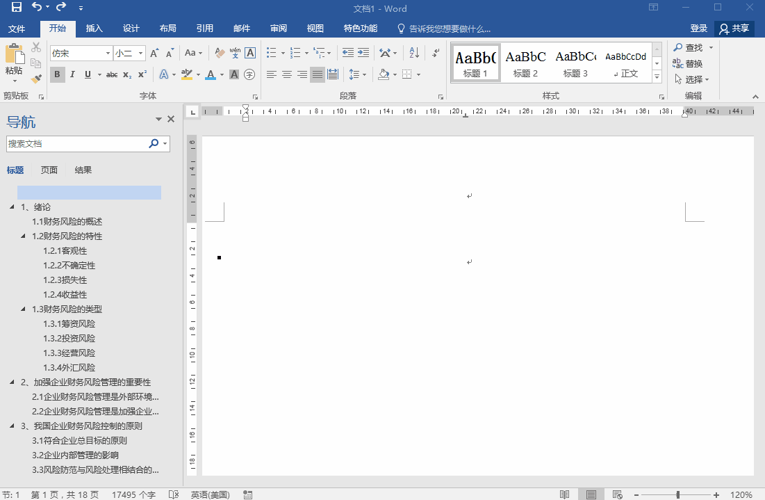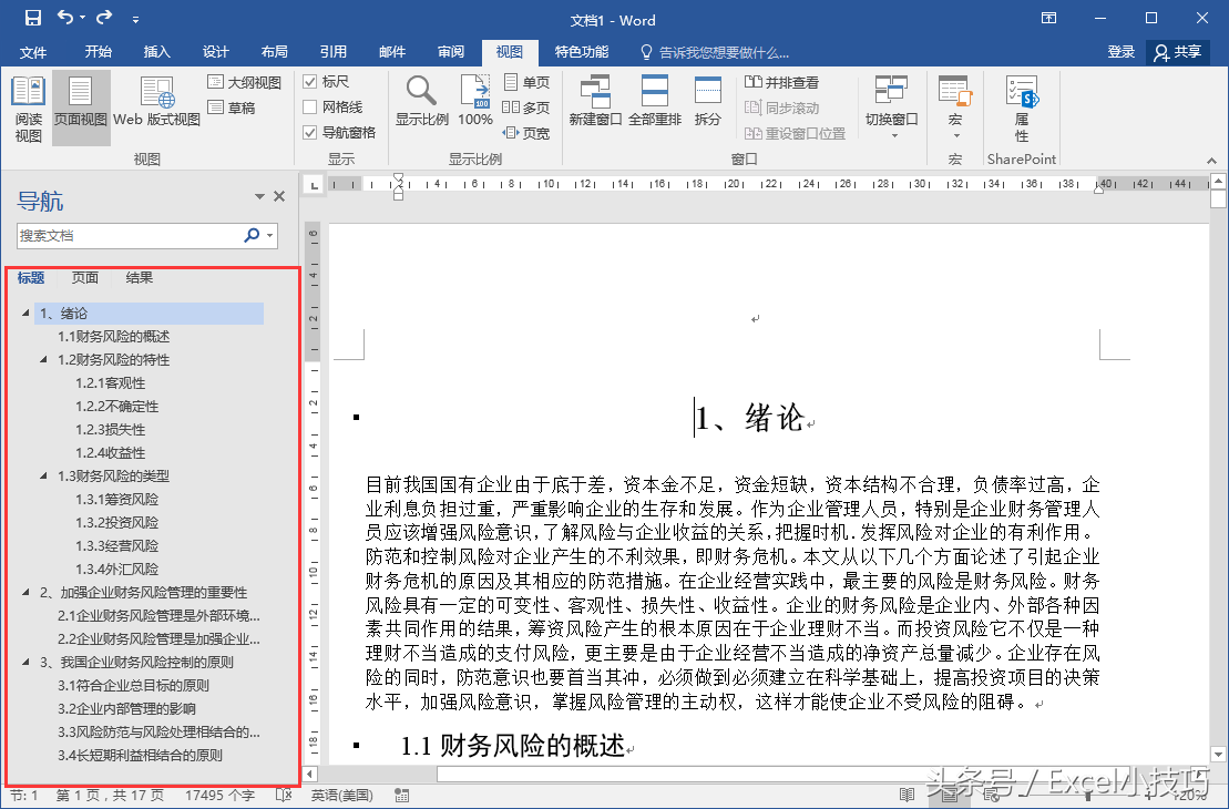 注意观察左侧的导航窗格中,就已经出现了一级标题;