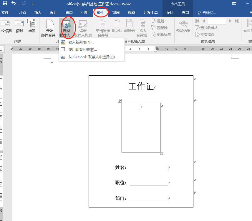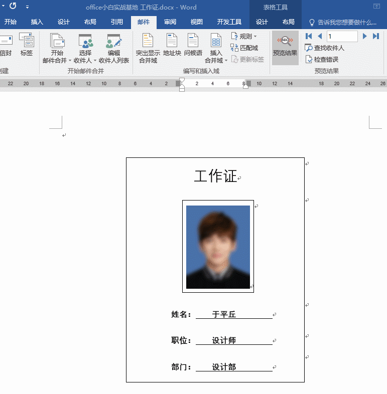 Word中邮件合并功能是非常强大的,可以帮助我们批量生成很多东西,比如我们经常收到的工资条就是通过word的邮件合并实现的,公司换岗了,所有工作证都要批量更换,今天我们就利用邮件合并的功能来完成工作证的批量打印。