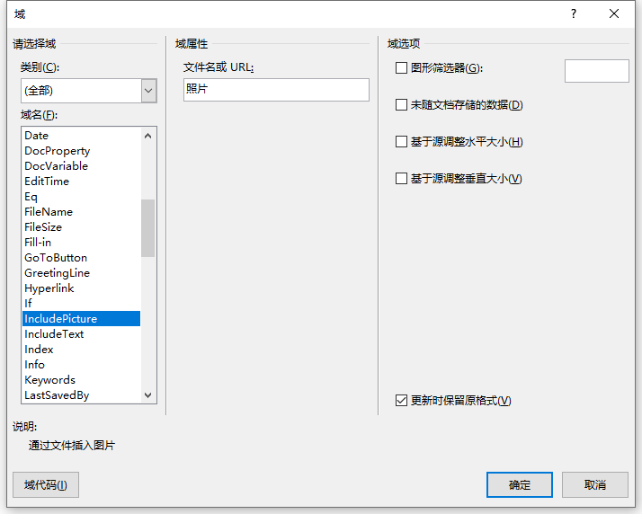 按下alt+f9,选择域代码中的“照片”二字,将其替换为「插入合并域」中的照片域,最后再次使用alt+f9切换回来。