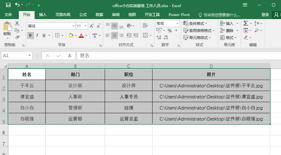 首先、我们把员工信息都整理成一个excel文件,并且把员工照片都放到一个文件件里。如下图