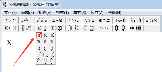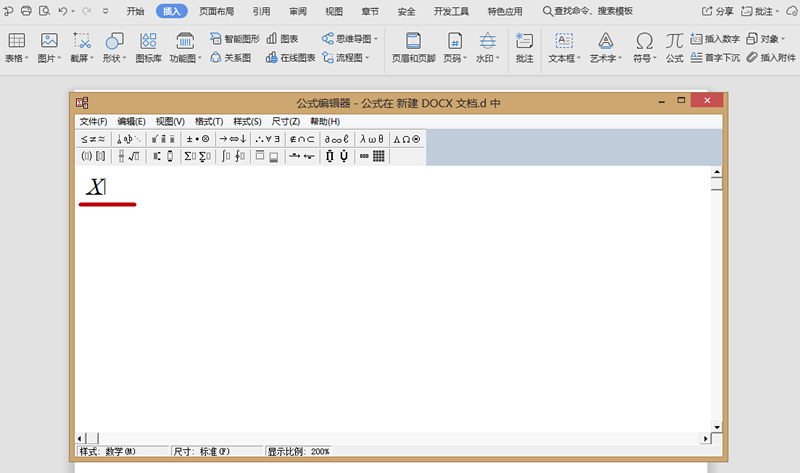 1.打开Word文档, 点击插入→点击公式,输入X,如下图所示: