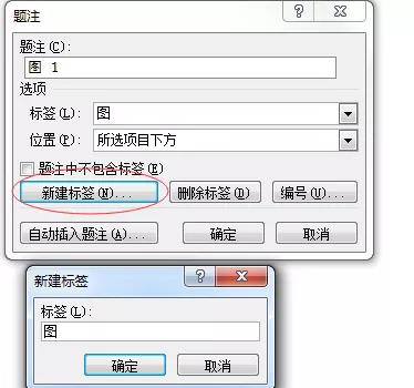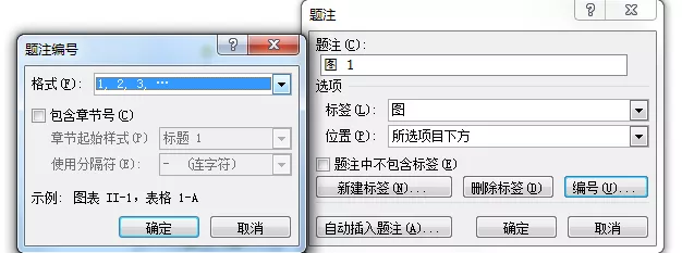 在【题注】对话框中,可在“新建标签”处设置标签,在“编号”处设置编号格式。