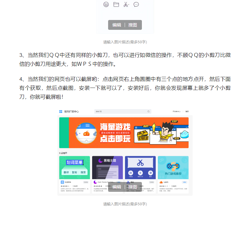 4、当然我们的网页也可以截屏哟:点击网页右上角圆圈中有三个点的地方点开,然后下面有个获取,然后点截图,安装一下就可以了,安装好后,你就会发现屏幕上就多了个小剪刀,你就可截屏啦!截屏后的效果如下哟!