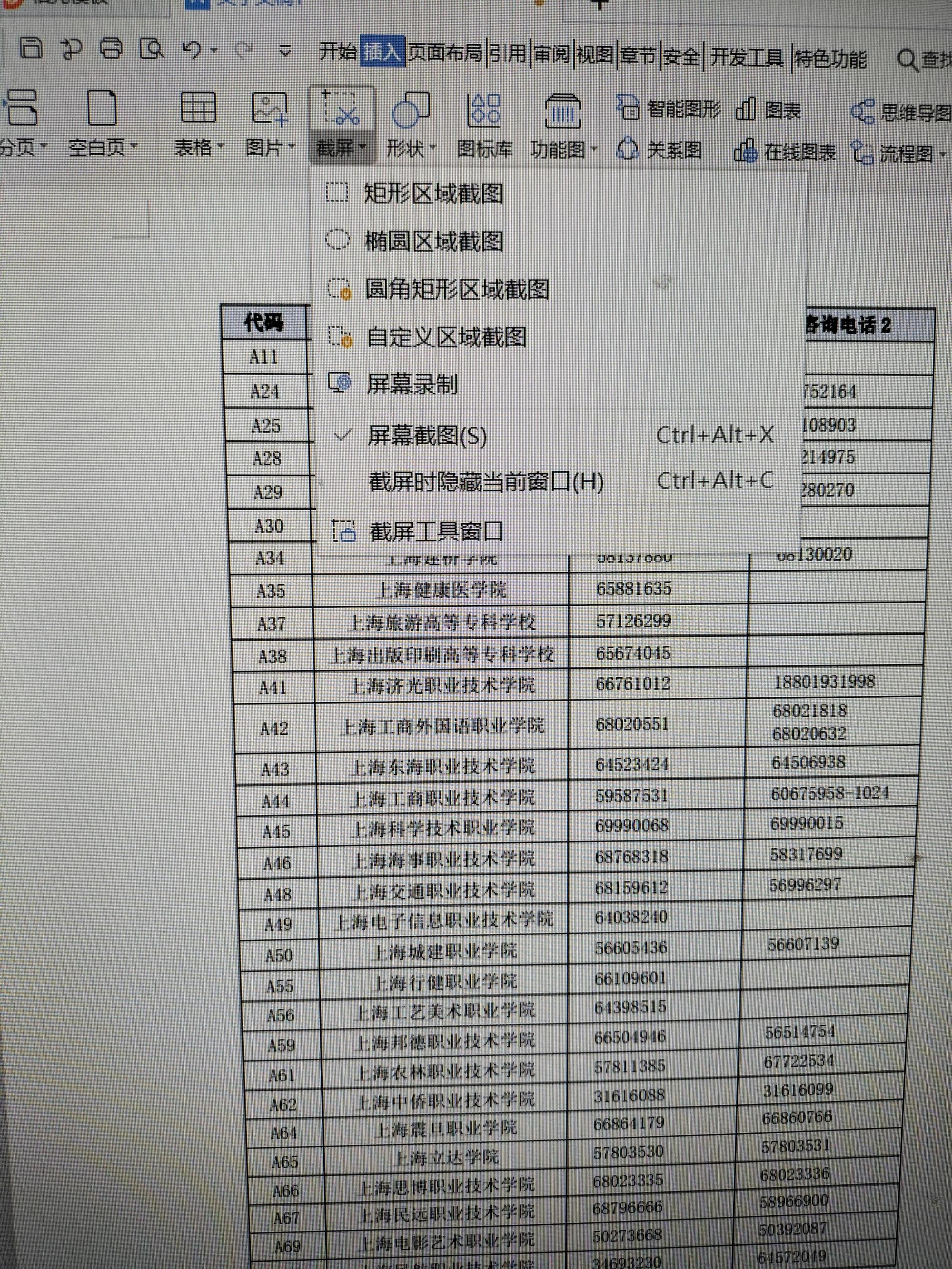 二、我们点击插入——截屏,然后我们可以看到截屏他有很多种方法: