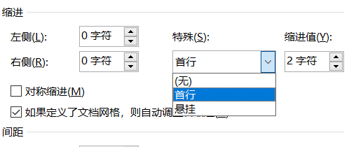 在段落里面找到缩进子菜单,找到特殊缩进设置