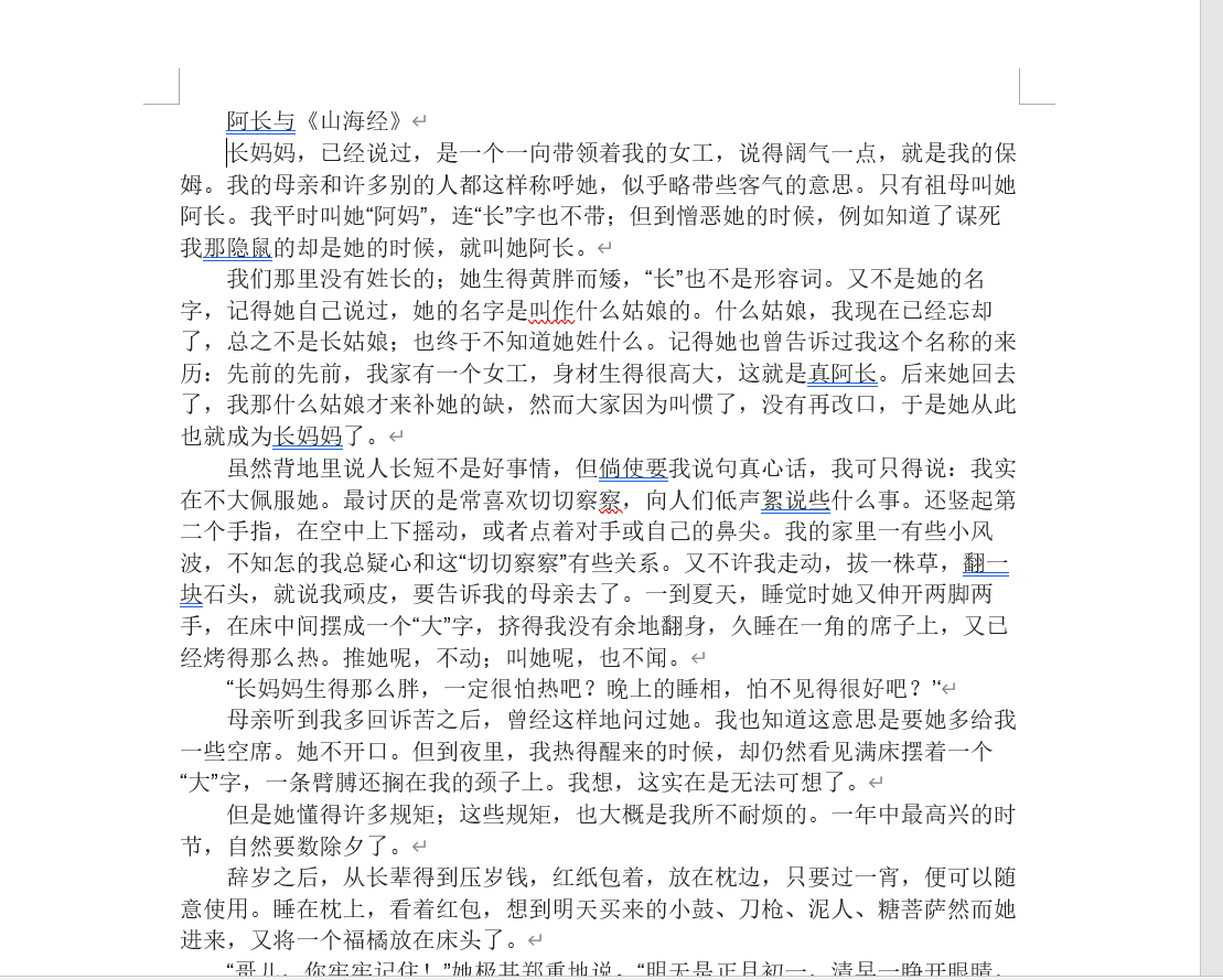 接下来,准备好,我们要进行首行缩进的文章,今天我选的使初中课本上鲁迅先生的“阿长与山海经”