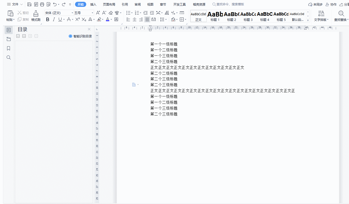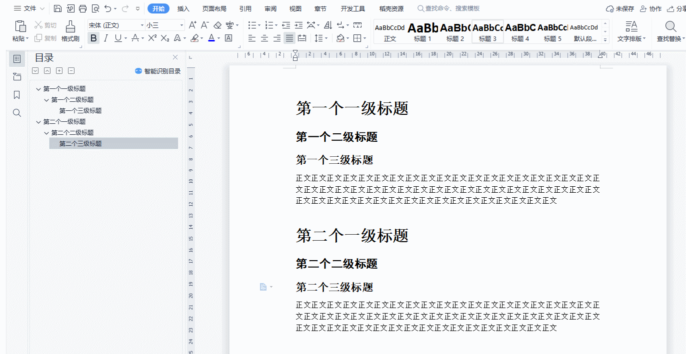 通过左侧可以看到设置后标题层级关系(依次从一级到二级再到三级……层层折叠)。