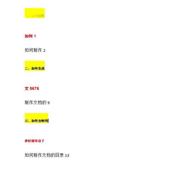 底纹黄色的,全部设为1级,红色的设为2级,全部的文档的级别设置完毕