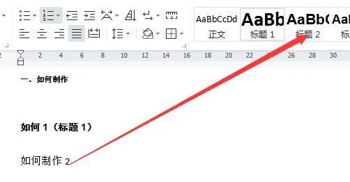 选中文档的文字,确定为几级的目录,就点击为标题几,就是他的级别。如图为2级,就中标题2