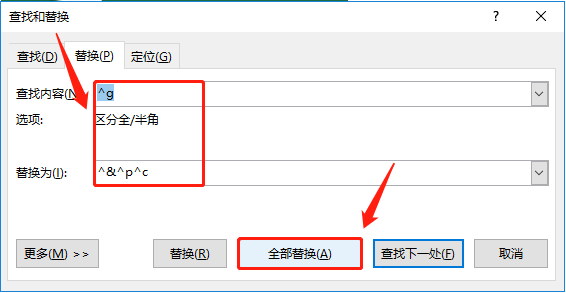 メ在WORD中按住CTRL H,在查找中输入:【^g】,替换中输入:【^&^p^c】点击全部替换。メ