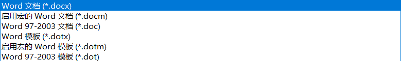 Word另存为对话框中的保存类型