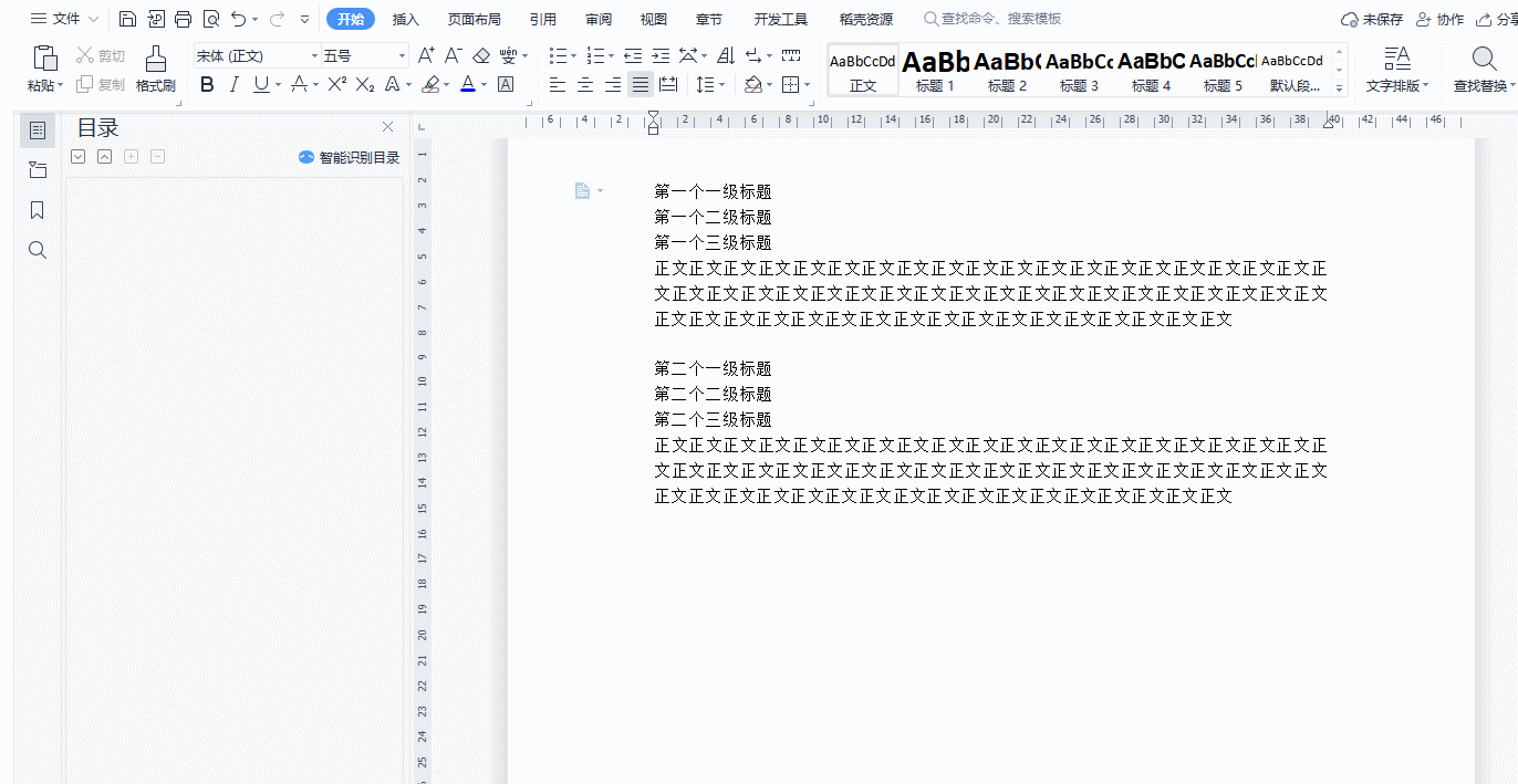 通过左侧可以看到设置后标题层级关系(依次从一级到二级再到三级……层层折叠)。